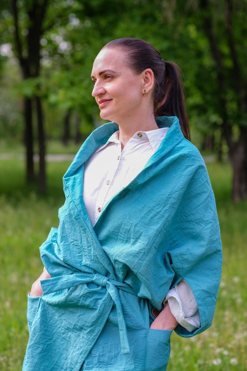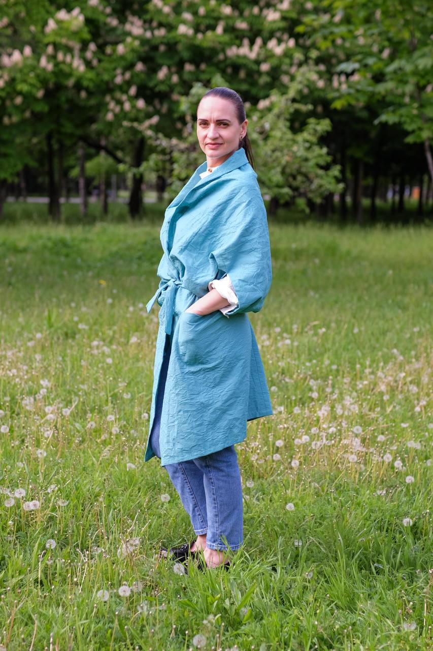 Що знадобиться: тканина льон жатка , трикотаж, легкий джинс,тощо… 2 м - 2,5 м(залежить від розміру), нитки в тон виробу, 3 ґудзика.